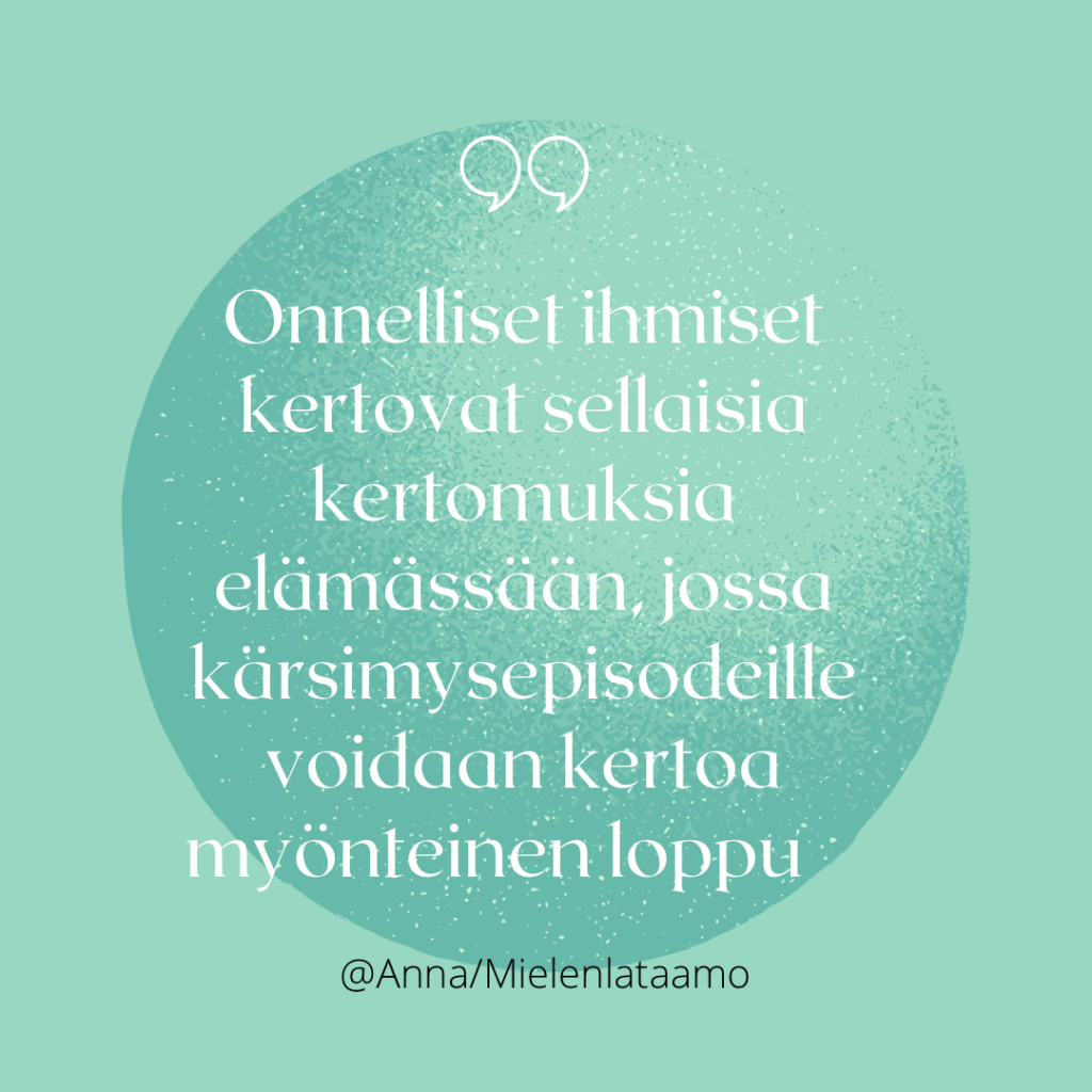 Onnelliset ihmiset kertovat selviytymiskertomuksia (McAdams 2005).